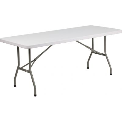 This rectangular folding table is 6 feet long and is beneficial in a multitude of settings that include banquet halls