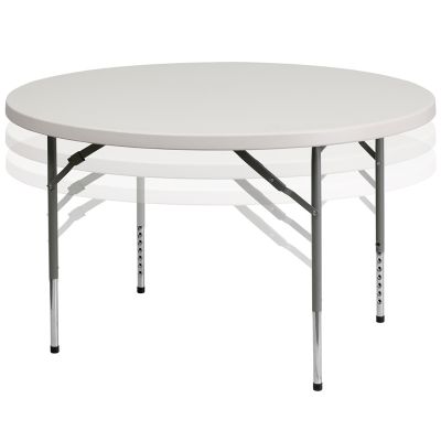 This round folding table is 4 feet long and is beneficial in a multitude of settings that include banquet halls